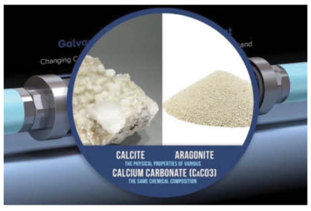 • Cả Canxit và Aragonit đều là hai dạng khác nhau của cùng một hợp chất, tức là canxi cacbonat (CaCO3). Tuy nhiên, chúng có các tính chất vật lý riêng biệt. Aragonit là một dạng khoáng chất nhóm cacbonat, cấu trúc tinh thể, hình thoi trực tâm với các tinh thể hình kim. Khó bám và tạo thành cặn tại thiết bị và đường ống, dễ bị rửa trôi trong quá trình sử dụng.